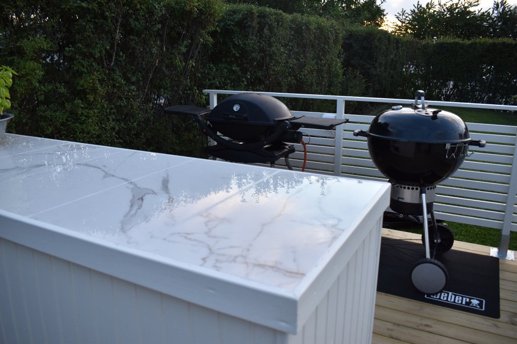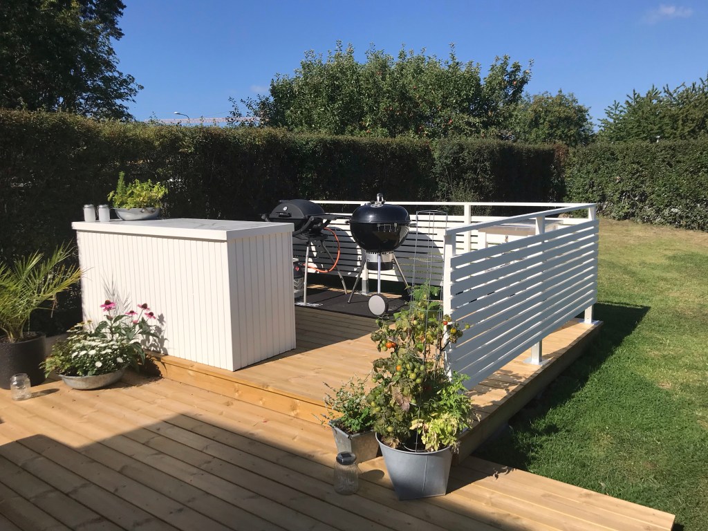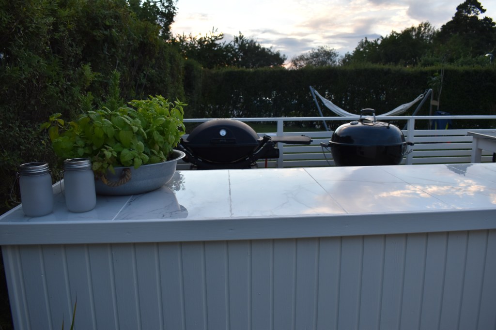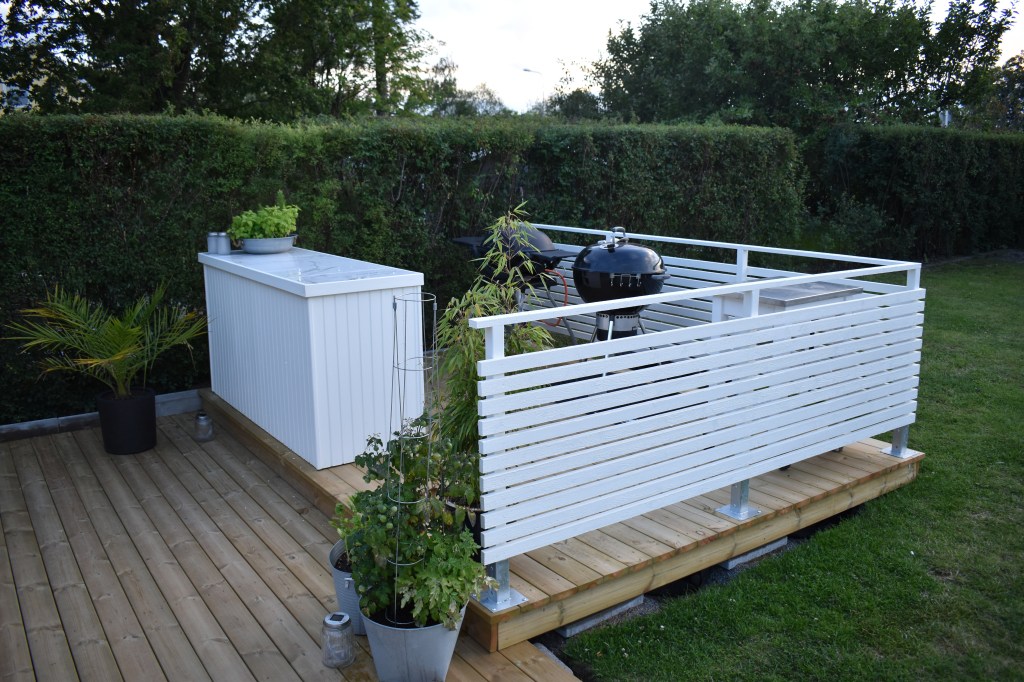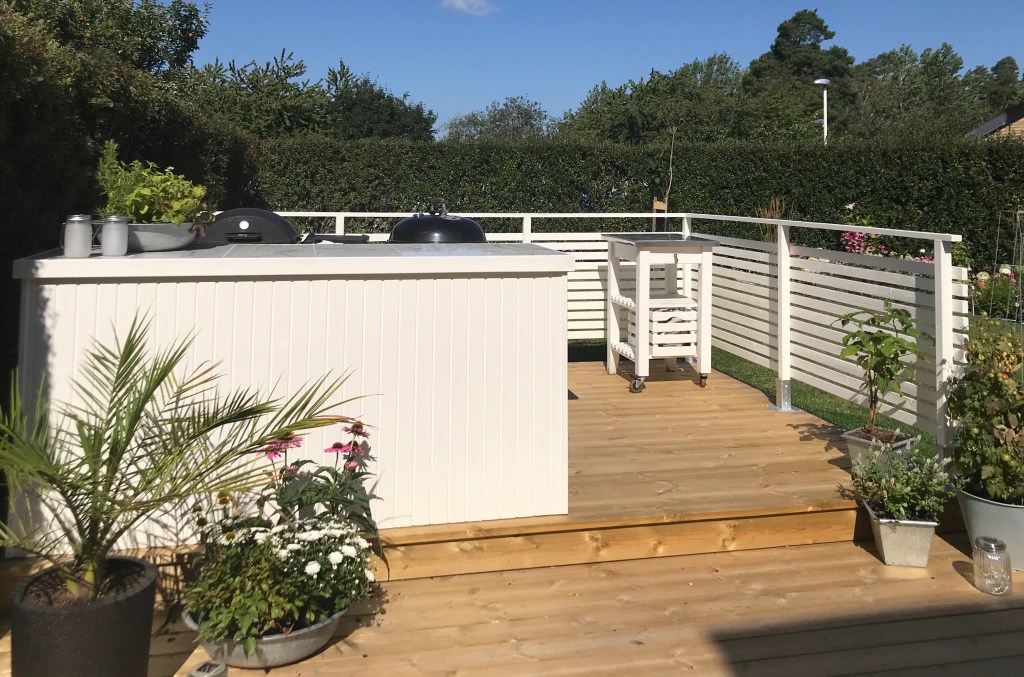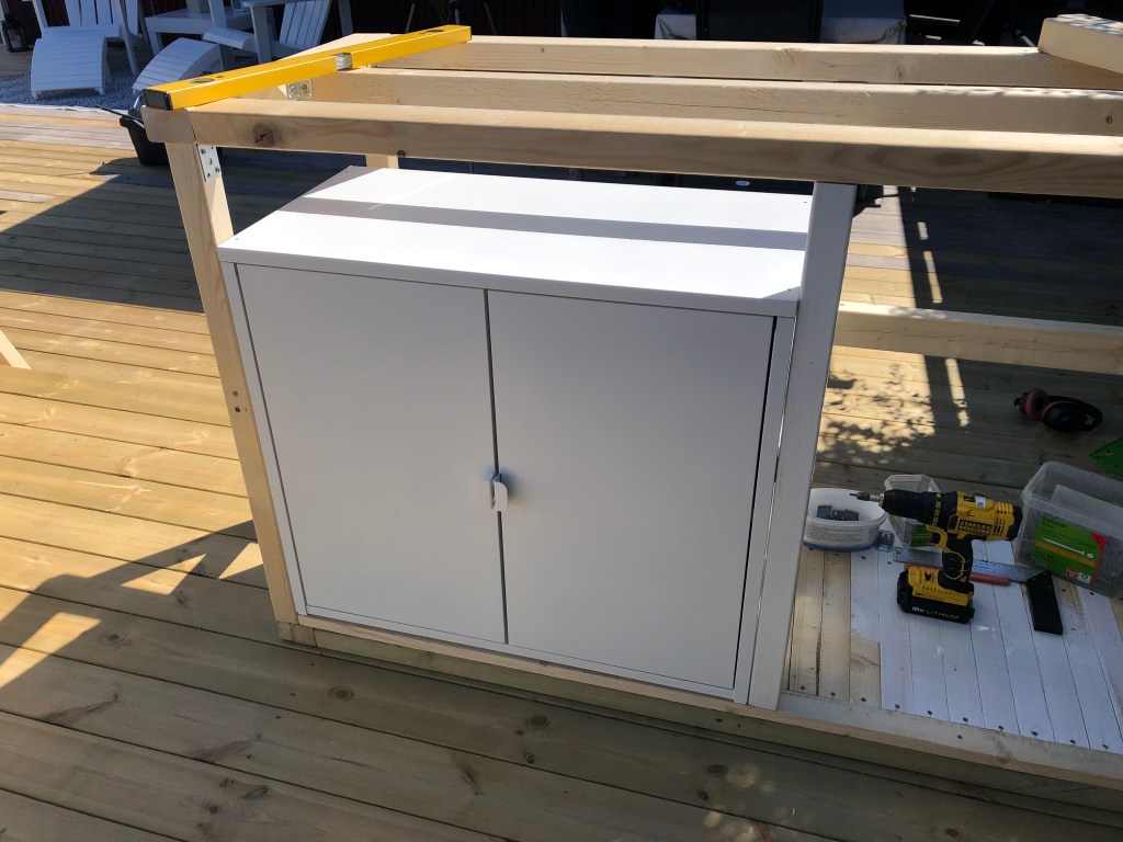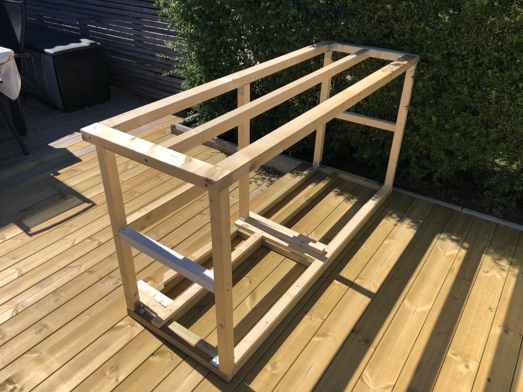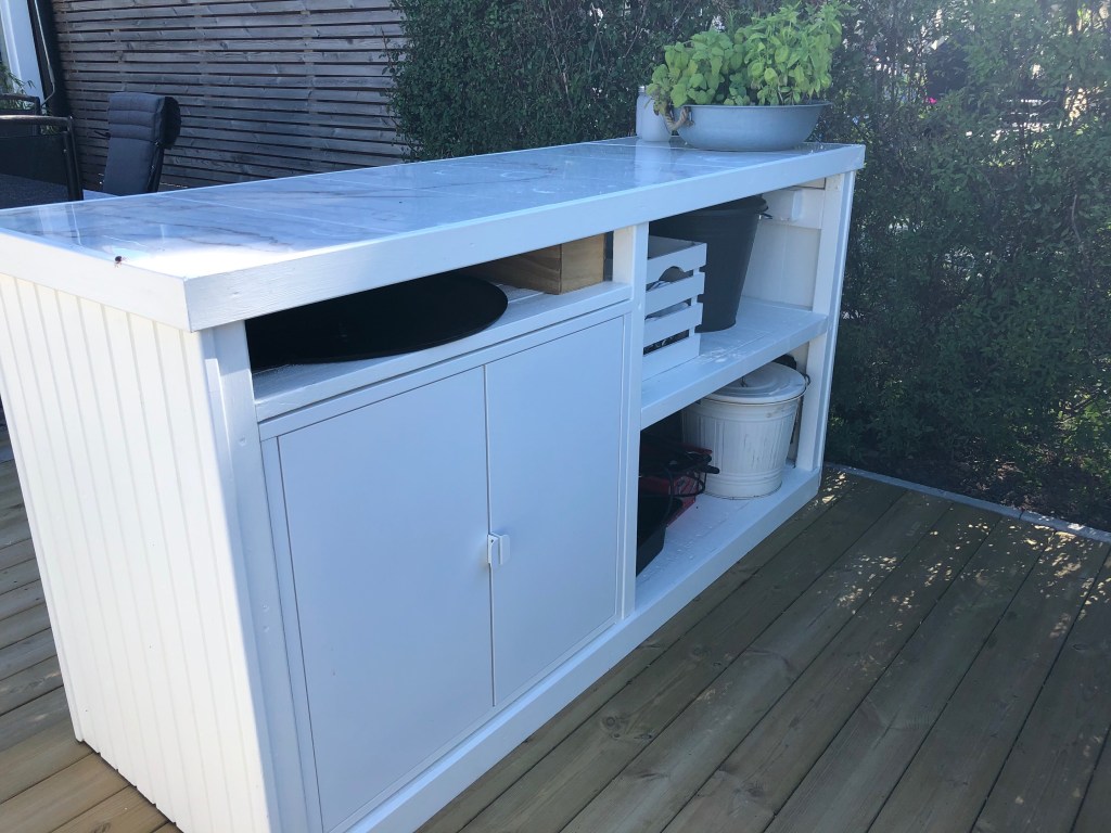As you can read elsewhere on our blog, we have built an outdoor kitchen. In this post, we show how the construction of the kitchen island was done. Among other things, we make a nice IKEA hack when we build in a cabinet. Large parts of the kitchen island are built of waste wood from our other projects. Good for the environment to use instead of throwing away!